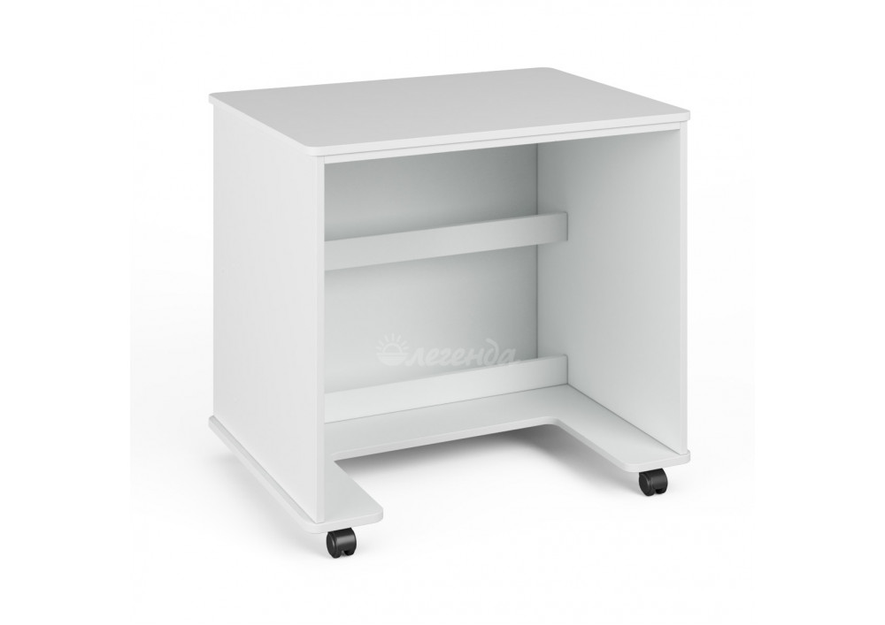 Практичный белый стол c колёсиками,легко перемещается по полу,задвигается и выдвигается.На боковом борту присутствует ручка для более комфортного перемещения столика.